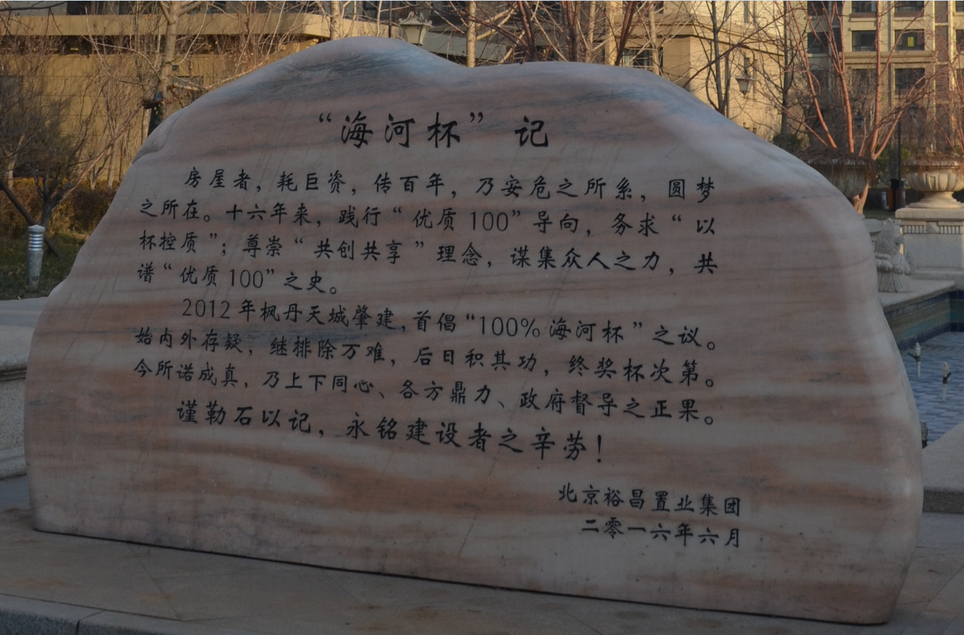 2012年11月25日,枫丹天城一期工程开工建设,项目开工后我司计划3∽4栋楼参与评优。裕昌天津公司知晓后,要求项目所有楼栋均需荣获天津市建设工程“海河杯”奖,提出“优质100”“以杯控质”“共创共享”等理念,并依据创优要求和施工总承包合同进行专项宣讲和引领,同时重申了合同中关于质量目标的相关约定:如果该项目不整体创优,将面临经济处罚;而若最终荣获,则可获得一定额度的奖励。经过裕昌天津公司的激励与指导,项目部在质量管理和创优目标方面有了新的认知——项目整体创优,并制订了具体的质量提升计划和创优举措。